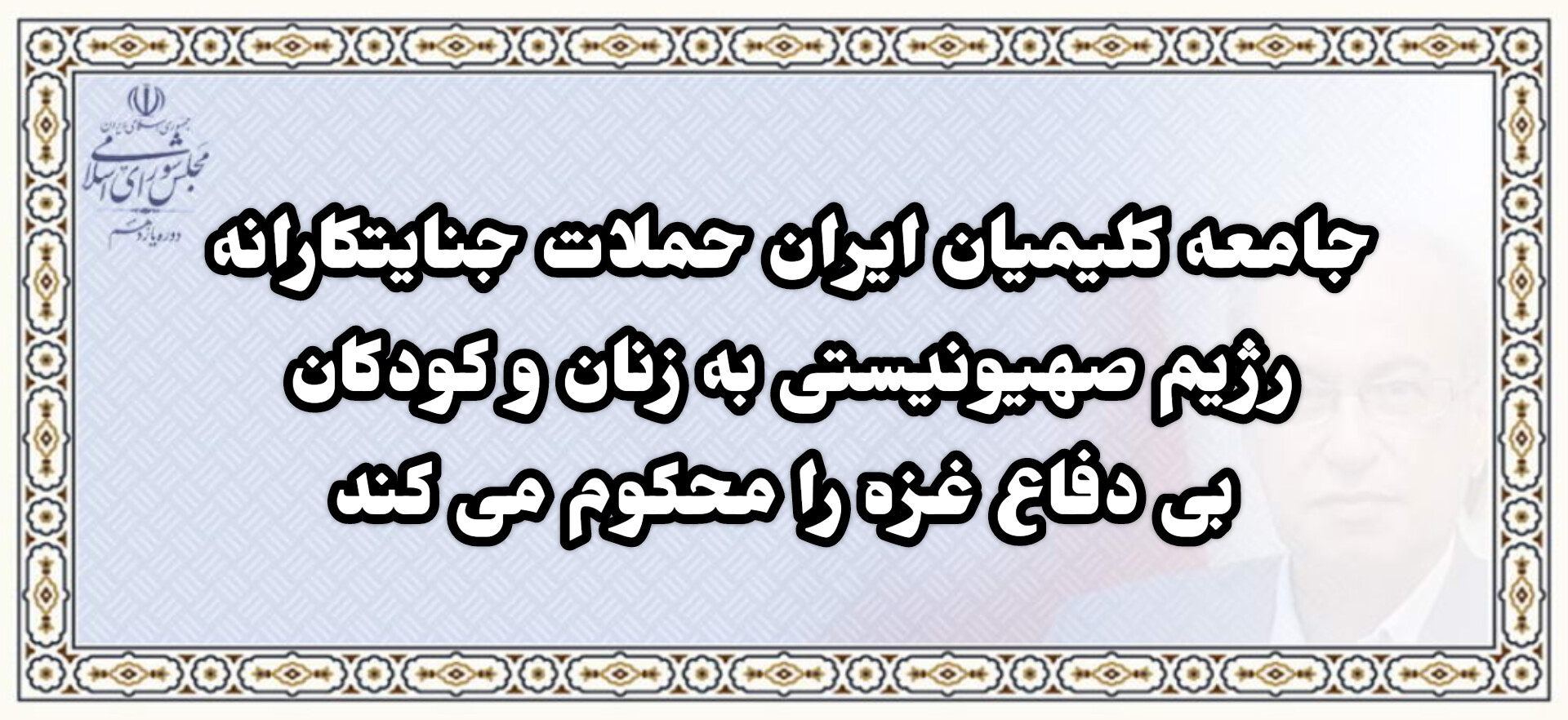 نماینده مردم کلیمیان در مجلس یازدهم با اشاره به اینکه مطابق قوانین و مولفه های حقوق بشری نباید هیچ ضرر جانی و مالی به غیر نظامیان وارد شود، اظهار کرد: بر این اساس به نمایندگی از جامعه کلیمیان ایران، حملات رژیم صهیونیستی به مردم بی دفاع غزه را محکوم می کنم.