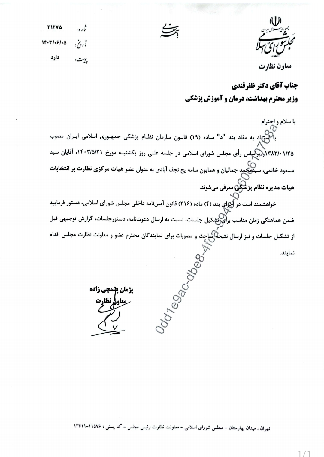 معرفی دکتر سامه یح به عنوان یکی از اعضای هیئت مرکزی نظارت بر انتخابات هیئت مدیره نظام پزشکی
